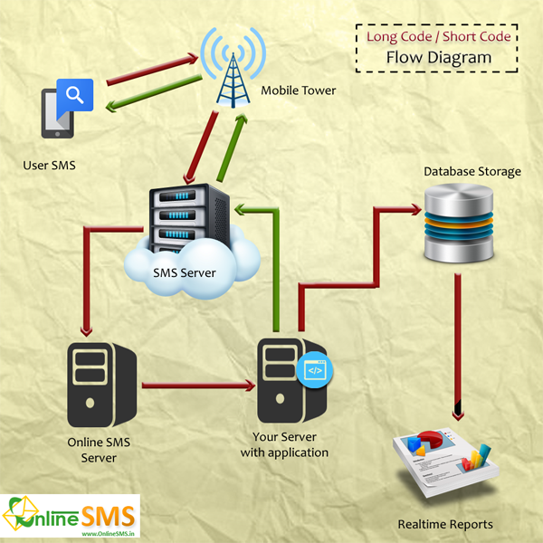 The below diagram will give a better understanding on how the data travels on the long code or short code services.